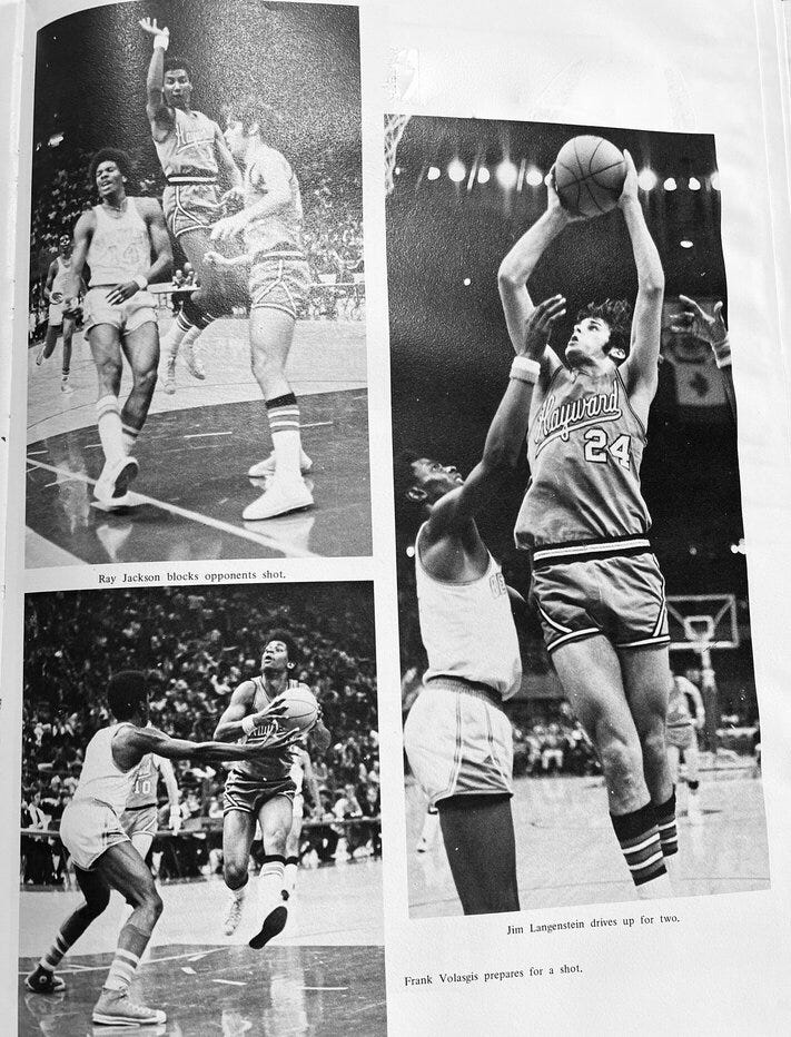 San Joaquin Memorial’s strategy with Pondexter was similar to Berkeley’s the previous year with its center John Lambert: Get the ball to the big guy and let him work inside. This caused major problems for the Farmers but after getting down early they came back strong and had cut the lead with about six minutes left to play. The ball went down to Pondexter in the paint. He turned and shot and Jim Langenstein, Hayward’s center, sent it back the other way. “I do remember Langenstein blocking his shot,” said Engeldinger. “Everyone was in awe of that.”